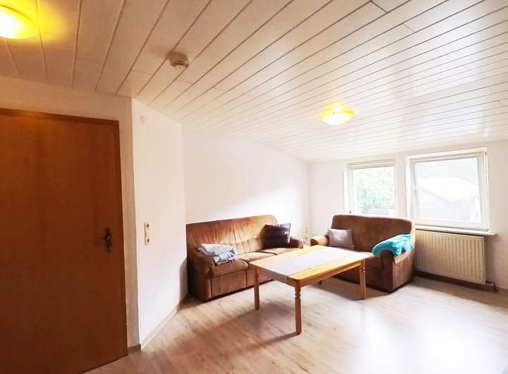 Die teilunterkellerte Doppelhaushälfte verfügt über eine ca. 96 m² große Wohneinheit im Erdgeschoss mit viereinhalb Zimmern, sowie eine separate Wohneinheit im Dachgeschoss mit drei Zimmern auf ca. 77 m² im Dachgeschoss. Die Einliegerwohnung umfasst ein Zimmer mit etwa 34 m² und ist von der Straße aus bequem zugänglich. Diese gehörte ursprünglich zu der Wohneinheit im Erdgeschoss und kann nach einem Durchbruch wieder zurück gebaut werden. Somit kann der Wohnbereich beispielsweise durch ein Wohn- oder Schlafzimmer erweitert werden. Es besteht natürlich die Möglichkeit, die Einliegerwohnung weiter als solche zu nutzen da sich dort neben dem Verkaufsraum noch eine Küchenzeile und ein Bad befindet. Das Bad kann unkompliziert ausgestattet werden, da die Sanitäranschlüsse bereits vorhanden sind.