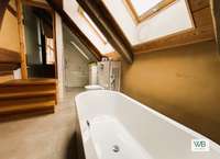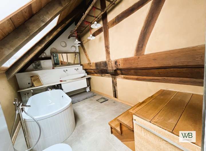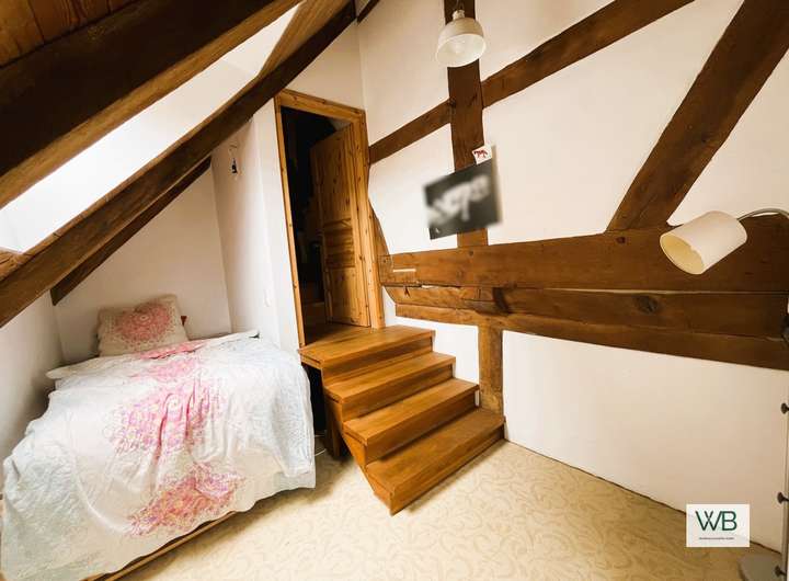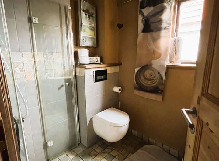 Zwei gemütliche Schlafzimmer, eine großzügige Relax-Ecke und ein stilvolles Badezimmer schaffen ein harmonisches Wohnambiente – ideal für Paare oder Familien, die das Besondere suchen. Die Deckenhöhe von 2,20 m im Obergeschoss sorgt für eine gemütliche Atmosphäre und unterstreicht den authentischen Charakter des Hauses.