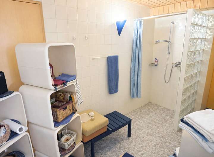 Ein echtes Plus dieser Immobilie ist der private Wellnessbereich: Der Saunabereich mit integrierter Dusche und angrenzendem WC bietet direkten Zugang zum hauseigenen Schwimmbad. Hier genießen Sie Erholung und Freizeitspaß unabhängig von Wetter und Jahreszeit – ein besonderes Extra für Groß und Klein.