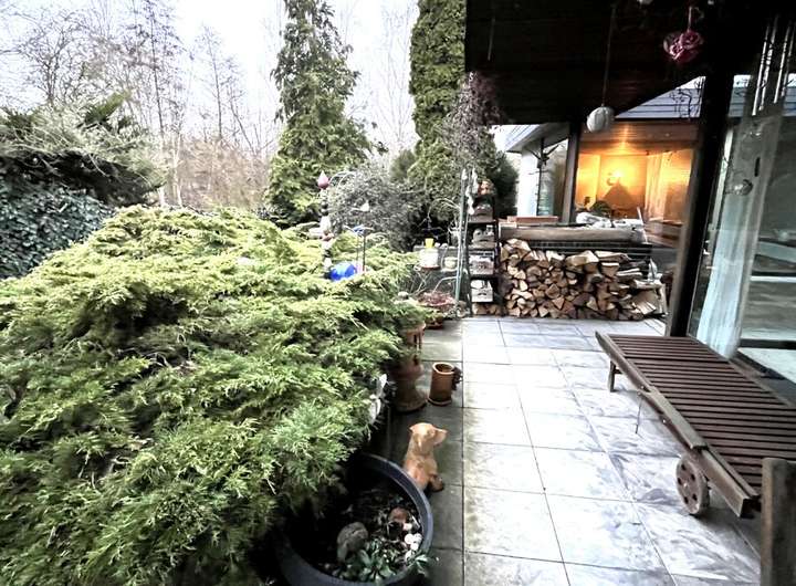 Die Terrasse lädt zu entspannten Stunden im Freien ein und bietet einen schönen Blick in den Garten perfekt für Grillabende, spielende Kinder oder ruhige Momente an der frischen Luft.