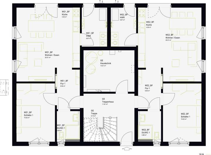 Diese Immobilie mit insgesamt ca. 246 m² Netto-Grundfläche (nach DIN277) im EG und DG bildet die perfekte Einheit für zwei Familien. Noch mehr Platz würden wir durch einen Keller bekommen, den wir optional anbieten können. Und bei modernster Haustechnik erzeugen Sie einen Teil Ihres benötigten Stroms mit der Photovoltaikanlage selbst.