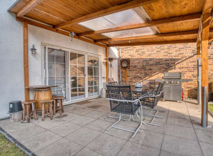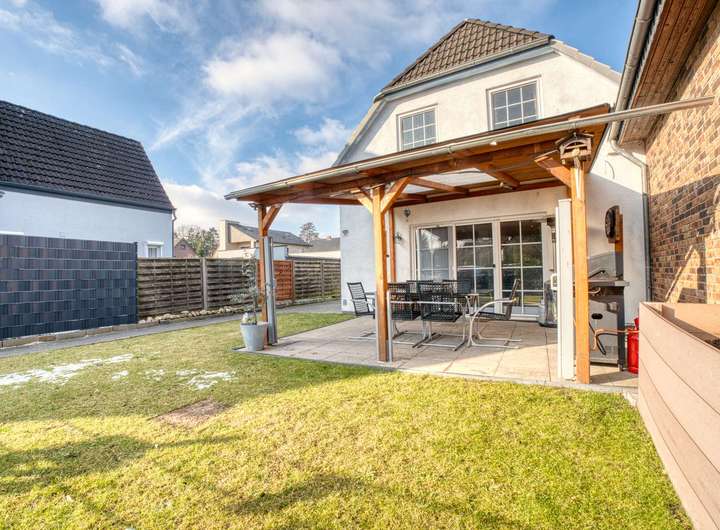 Dieses 1994 erbaute Doppelhaus in Schwanewede-Neuenkirchen präsentiert sich heute in einem äußerst gepflegten und kontinuierlich modernisierten Zustand. Über die Jahre wurde die Immobilie nicht nur sorgfältig instand gehalten, sondern gezielt weiterentwickelt, sodass sie modernen Wohnansprüchen in Technik, Komfort und Gestaltung gerecht wird. Bereits die neu gepflasterte und ansprechend gestaltete Auffahrt vermittelt einen hochwertigen ersten Eindruck. Das Grundstück wurde rundum mit neuen Zäunen eingefriedet und bietet dadurch ein angenehmes Maß an Privatsphäre. Im hinteren Bereich wurde der Garten revitalisiert und durch einen praktischen Geräteschuppen funktional ergänzt. Ein Highlight ist die überdachte, südlich ausgerichtete Terrasse, die sonnige Stunden vom Frühjahr bis in den Herbst hinein ermöglicht und den Wohnraum harmonisch nach außen erweitert.