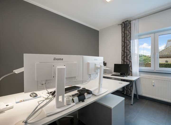 Die ca. 148 m² große Wohnung im Erdgeschoss ist nicht vermietet und kann nach Absprache zeitnah bezugsfrei übergeben werden. Sie können mit Ihrer Familie selbst in diese Wohnung einziehen oder das Mehrfamilienhaus komplett vermieten. Auch eine Teilnutzung als Büro ist hier denkbar. Der Rest des Hauses ist vermietet.