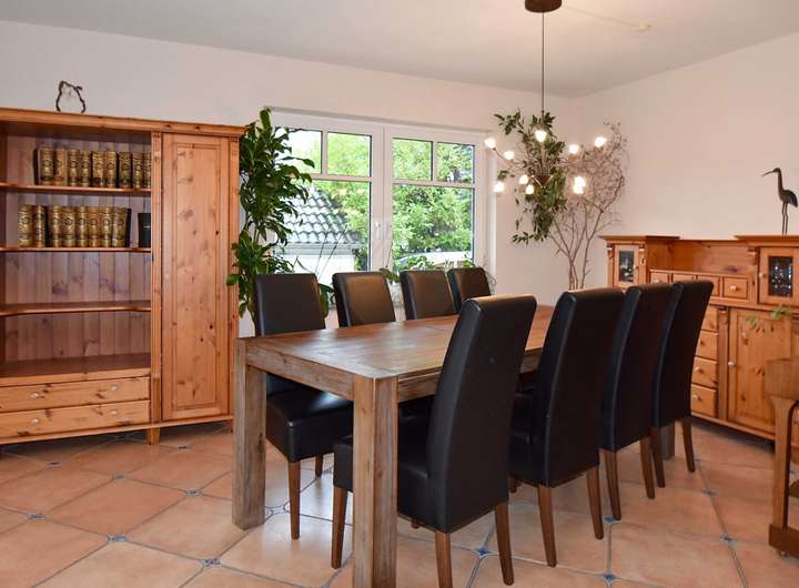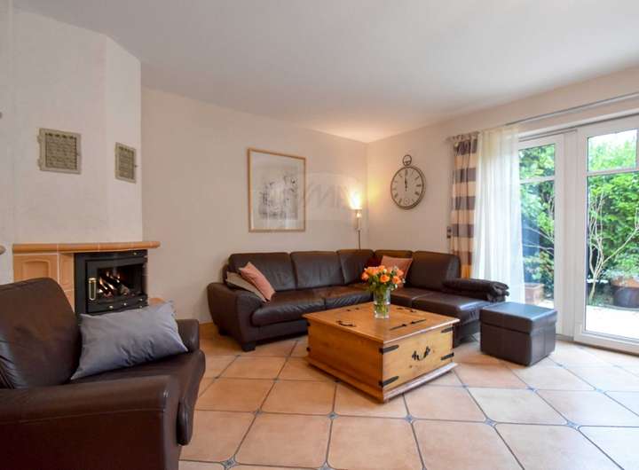 Auf ca. 145 m² Wohnfläche erstrecken sich zwei Wohnetagen sowie ein wohnwirtschaftlich ausgebautes Untergeschoss. Das Erdgeschoss überzeugt mit einem großzügigen Wohn- und Essbereich, einer separaten Einbauküche, einem kleinen Arbeitszimmer und einem Gäste-WC – ideal für Familie und Gäste.