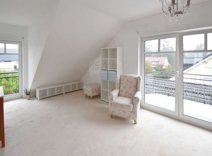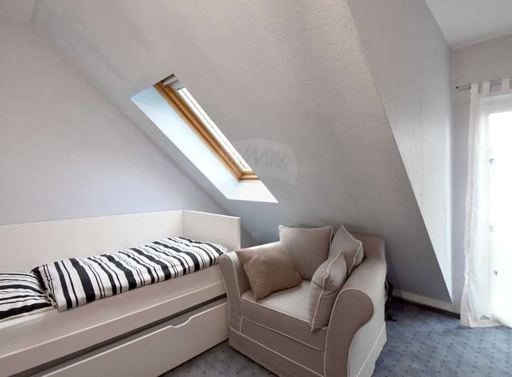 Im Dachgeschoss befinden sich drei gemütliche Schlafzimmer und ein Tageslichtbad. Über eine feste Treppe gelangen Sie in den Spitzboden, der als Hobbyraum genutzt werden kann. Das Untergeschoss bietet ca. 45 m² wohnlich ausgebaute Fläche mit Duschbad – ideal als Gästezimmer oder zusätzlicher Wohnraum. Wie in allen Etagen sorgt auch hier die Fußbodenheizung für angenehme Wärme.