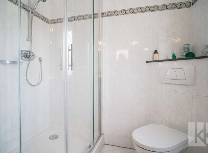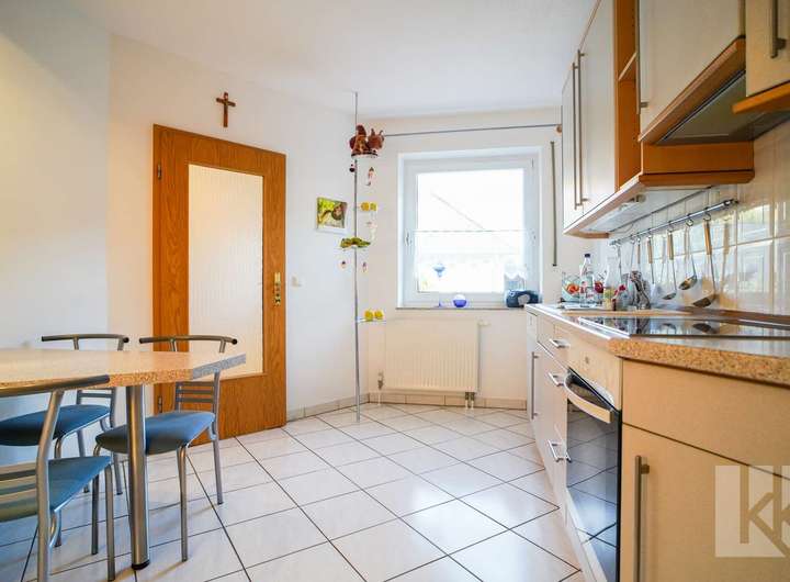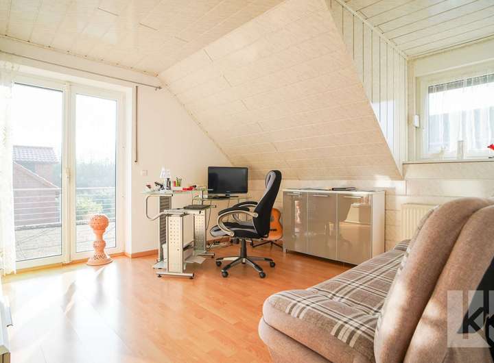 Im Obergeschoss befinden sich drei gut geschnittene Zimmer. Das Schlafzimmer verfügt über einen eigenen Balkon – ein ruhiger Rückzugsort. Zwei weitere Räume lassen sich flexibel als Kinderzimmer, Arbeitsbereich oder Gästezimmer nutzen. Ergänzt wird diese Ebene durch ein Tageslichtbad mit Dusche und Eckbadewanne.