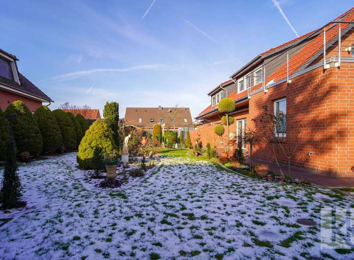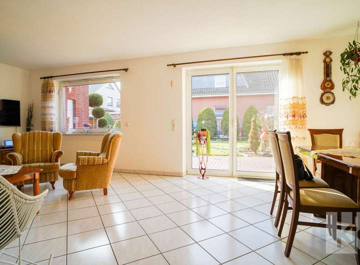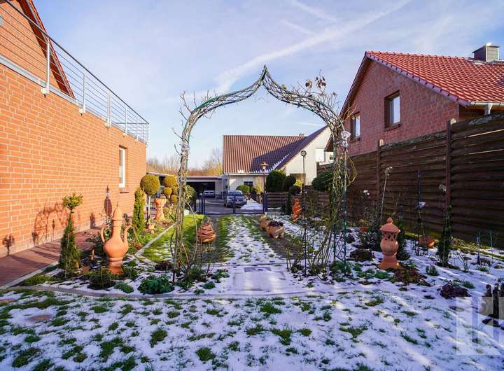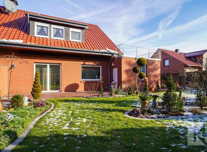 Der Garten ist gepflegt und sichtgeschützt angelegt. Die Terrasse erweitert den Wohnbereich ins Freie und bietet einen wunderschönen Platz für entspannte Stunden.