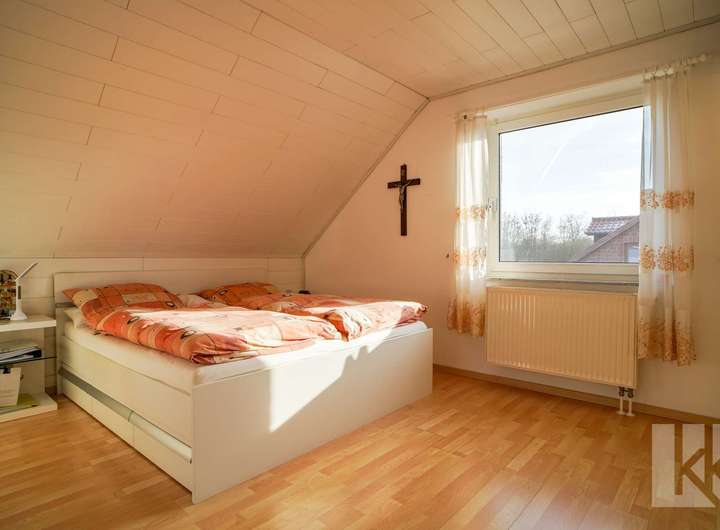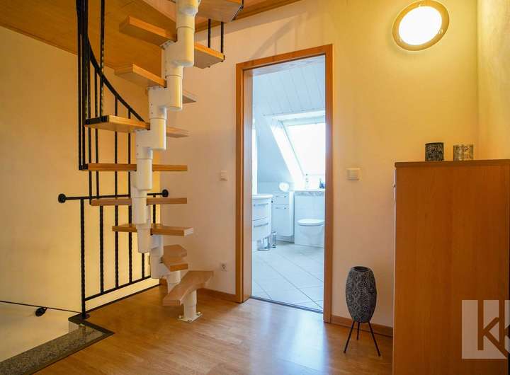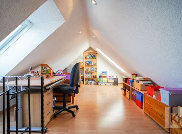 Der ausgebaute Spitzboden bietet zusätzlichen Stauraum und rundet das Raumangebot ab.