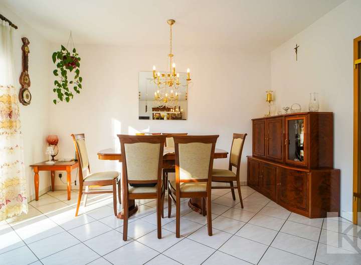 Das Herzstück des Erdgeschosses bildet das großzügige Wohn- und Esszimmer. Bodentiefe Fensterflächen sorgen für viel Licht und öffnen den Raum zur Terrasse. Die Übergänge zwischen Innen- und Außenbereich sind fließend und schaffen eine angenehme Großzügigkeit.