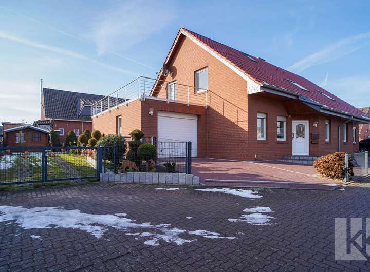Die integrierte Garage sowie weitere Stellmöglichkeiten vor dem Haus ergänzen das Gesamtbild. Eine Immobilie mit klarer Architektur, durchdachter Raumaufteilung und großzügigen Außenflächen.