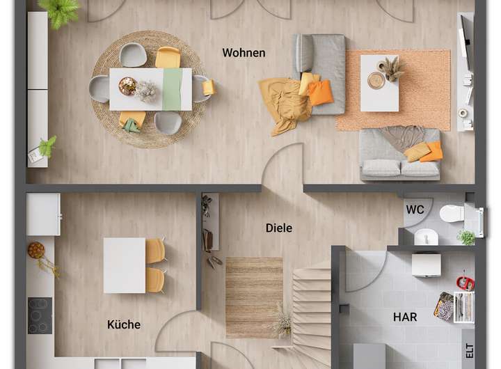 • Fußbodenheizung: Warme Füße? Auch die Fußbodenheizung ist inklusive. Sie steigert nicht nur den Wert Ihres Hauses, sondern sorgt ganz nebenbei noch für echtes Wohngefühl.