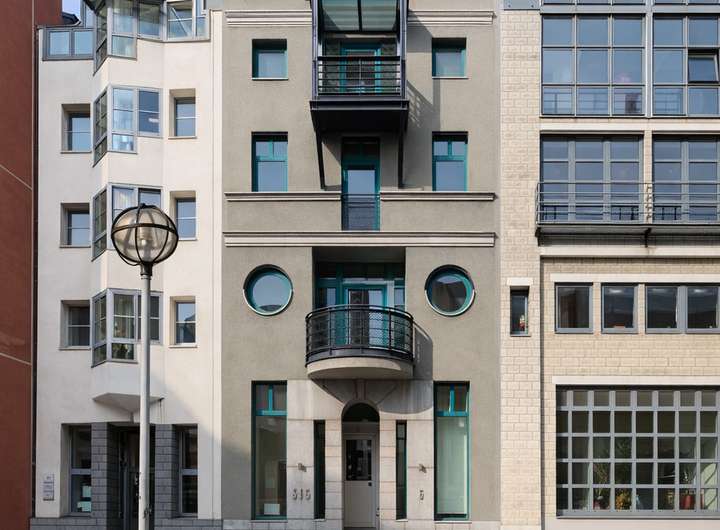 Das Haus liegt in der architektonisch spannenden Saalgasse, einem Paradebeispiel postmoderner Baukunst der 1980er Jahre. Entworfen von namhaften Architekten bietet diese Häuserzeile einen stilvollen Kontrast zur benachbarten Schirn Kunsthalle.