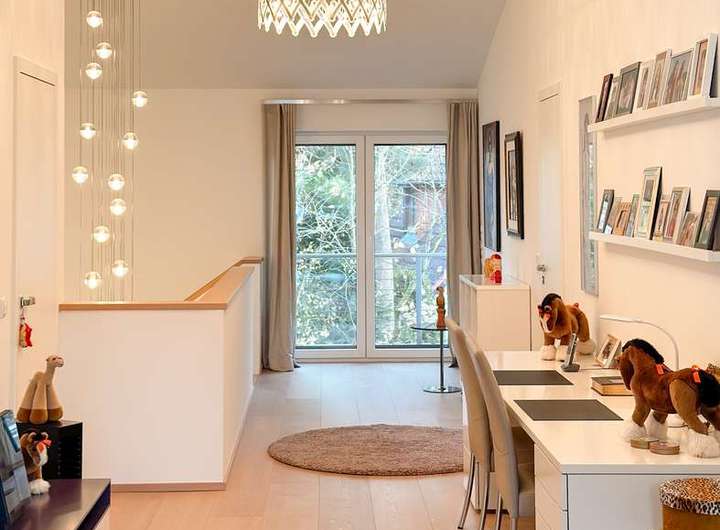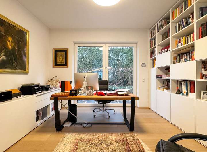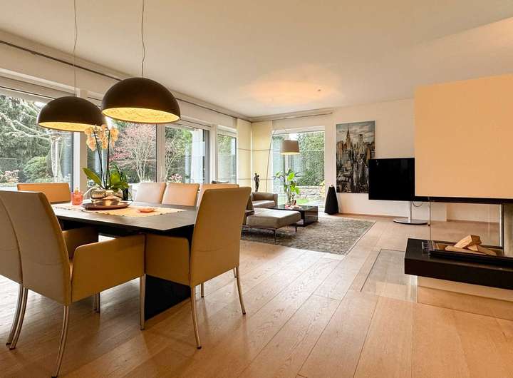 Auf einer großzügigen Wohnfläche von ca. 300 m² verteilen sich 7 Zimmer und 3 moderne Tageslichtbäder, eine elegante Wohnküche sowie ein separates Gäste-WC im Foyer.