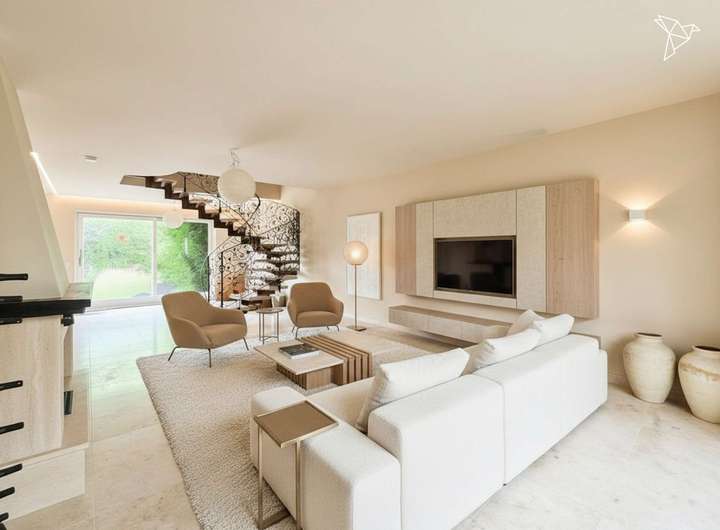 Das Haus wurde zuletzt im Jahr 2015 modernisiert. Im Rahmen dieser Maßnahmen wurden unter anderem die Elektrik vollständig erneuert, mehrere Badezimmer modernisiert und Teile des Innenausbaus überarbeitet. Fünf voll ausgestattete Badezimmer sowie ein zusätzliches Gäste-WC sorgen für hohen Komfort im Alltag. Drei hochwertige Einbauküchen bieten moderne Ausstattung und Funktionalität auf jeder Wohnebene. Die Kombination aus Parkett- und Steinböden unterstreicht den wohnlichen Charakter, während die Fußbodenheizung eine angenehme Wohlfühlatmosphäre schafft.