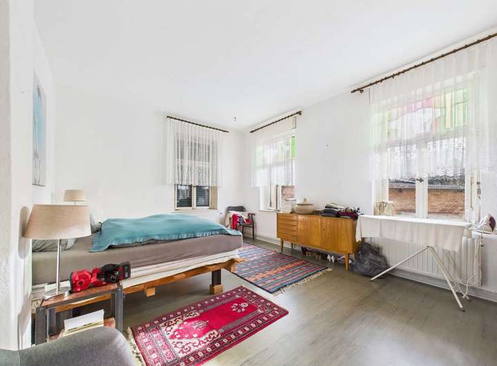 Die großzügige Vollunterkellerung, das Nebengelass mit eigener Werkstatt und die Ausbaureserve im Dachgeschoss eröffnen Raum für persönliche Träume und neue Ideen. Draußen lädt der große Garten mit seinem alten Baumbestand dazu ein, den Alltag hinter sich zu lassen – ein Ort, der nach ein wenig Pflege wieder zu einem wunderbaren Rückzugsraum werden kann. Der geschützte Innenhof mit Stellplätzen ergänzt das stimmige Gesamtbild.