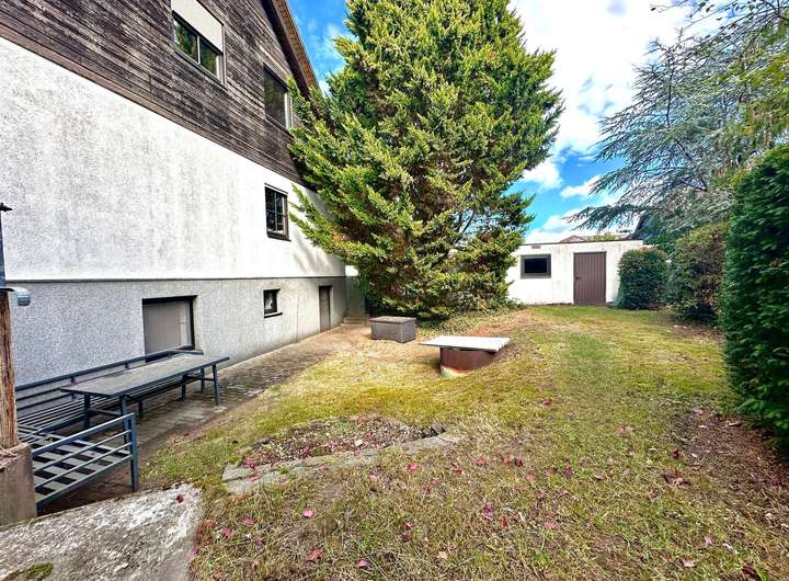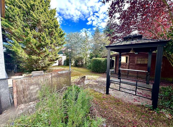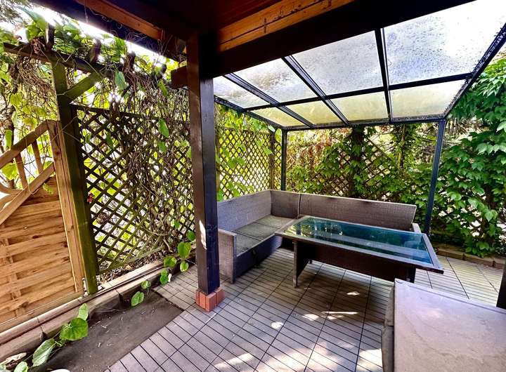 Der Außenbereich überzeugt mit einer durchdachten Gestaltung, die Erholung und Funktionalität harmonisch miteinander verbindet. Eine Garage bietet ausreichend Platz für Ihr Fahrzeug, während der Garten mit Gartenlaube eine grüne Oase der Ruhe darstellt. Die umlaufende Terrasse, die sowohl von der Küche als auch vom Wohnzimmer aus begehbar ist, lädt zum Verweilen ein und ermöglicht es Ihnen, Ihr neues zu Hause in vollen Zügen zu genießen.