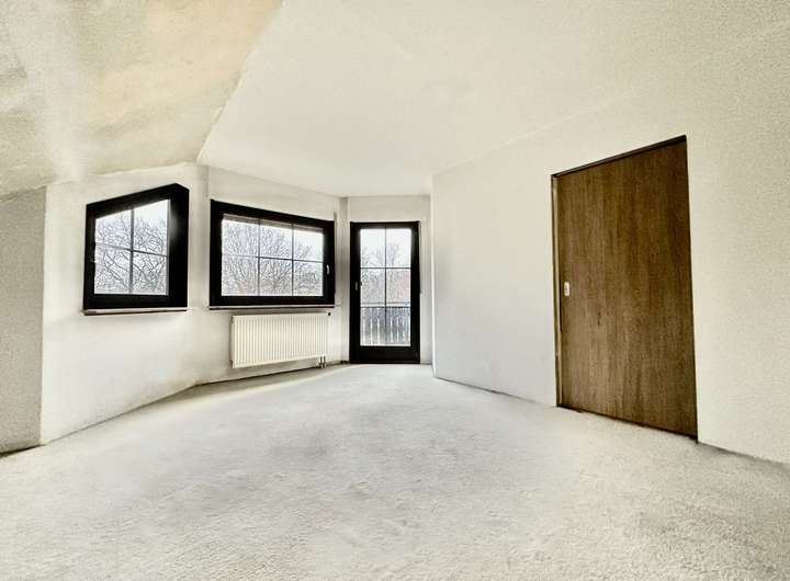 Das Dachgeschoss bietet mit fünf vielseitig nutzbaren Zimmern ein hohes Maß an Flexibilität. Ob als Schlaf-, Kinder- oder Arbeitszimmer, die Möglichkeiten der individuellen Gestaltung sind vielfältig. Zwei geschmackvoll ausgestattete Badezimmer mit Dusche sorgen für zusätzlichen Wohnkomfort. Ein besonderes Highlight stellt der großzügige Balkon dar, von dem aus sich eine malerische Aussicht auf den Schlossteich eröffnet.