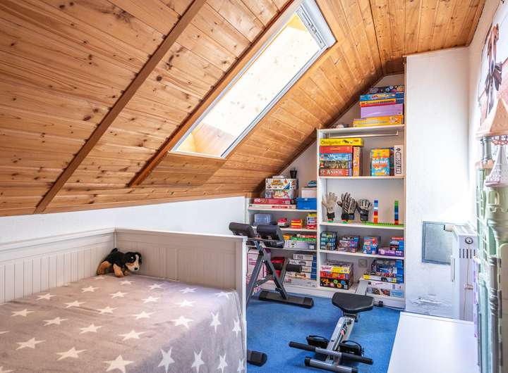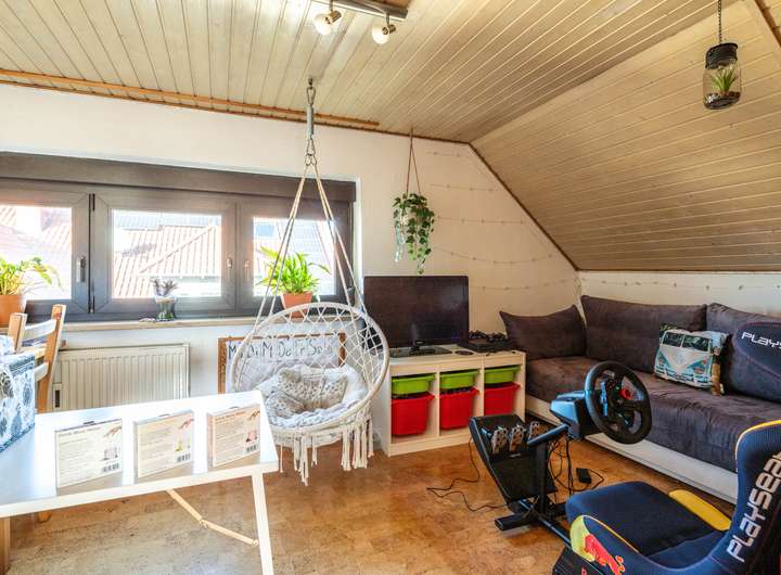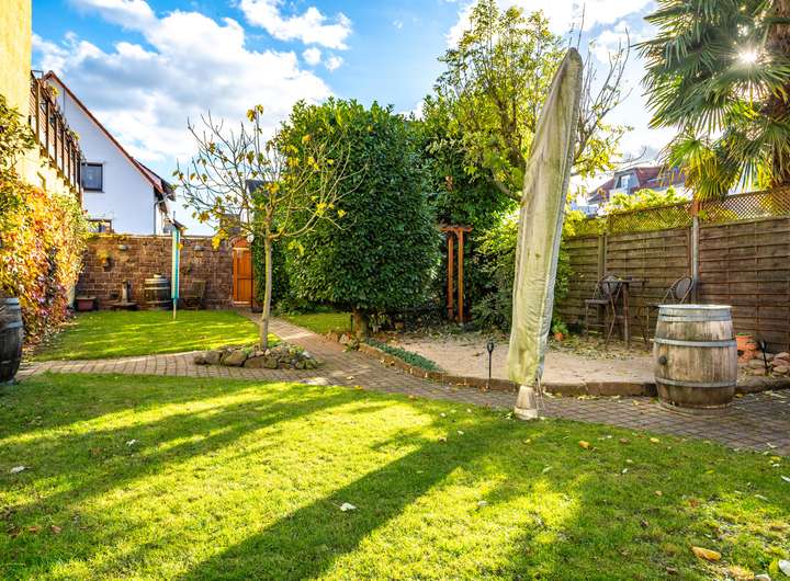 Dieses gepflegte und charmante Einfamilienhaus mit ca. 150 m² Wohnfläche und einem herrlich begrünten, bereits eingewachsenen Gartenbereich, befindet sich in zentraler Lage von Schöneck-Oberdorfelden. Im Erdgeschoss des Hauses befinden sich ein vom Platz her angemessenes Kinder- bzw. Arbeitszimmer sowie ein geräumiges Tageslichtbad mit Dusche. Im Obergeschoss erwarten Sie ein großzügiger und durch einen Kaminofen besonders gemütlicher Wohn- / Essbereich mit Zugang zur sonnigen Süd-West Terrasse, eine offene Küche, inkl. Einbauküche, ein großes Schlafzimmer sowie ein Tageslichtbad mit Dusche und Wanne. Das Dachgeschoss verfügt über zwei weitere helle Kinderzimmer, eines davon mit angrenzendem Ankleidezimmer sowie ein kleines, aber gut nutzbares Arbeitszimmer. Das Haus ist voll unterkellert. Hier stehen Ihnen neben dem Heizungs- und Hauswirtschaftsraum zwei geräumige Abstellräume zur Verfügung. Im Außenbereich befinden sich ein Geräteraum sowie ein Abstellraum mit Zugang zu dem wunderschönen Garten, der zum Entspannen und Relaxen einlädt.