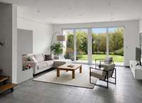 Bereits beim Betreten empfängt Sie ein gut geschnittener Eingangsbereich mit Gäste-WC. Das Erdgeschoss ist vollständig mit Fußbodenheizung ausgestattet und verfügt über einen eleganten Fliesenboden. Die offene Einbauküche fügt sich harmonisch in den Wohnbereich ein und schafft ein kommunikatives Wohnkonzept. Das Herzstück dieser Etage ist der großzügige Wohn- und Essbereich mit modernen Kamin, überdurchschnittlich hohen Decken, einem stimmigen Lichtkonzept und einer beeindruckenden Fensterfront mit unverbauten Blick ins Grüne. Von hier aus gelangen Sie direkt in den sonnigen Garten mit Südwest-Ausrichtung, der zum Entspannen und Verweilen einlädt. Die offene Treppe unterstreicht den modernen Charakter des Hauses, während das Malervlies im gesamten Gebäude für ein hochwertiges Gesamtbild sorgt.