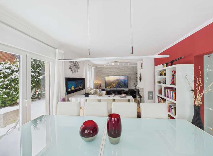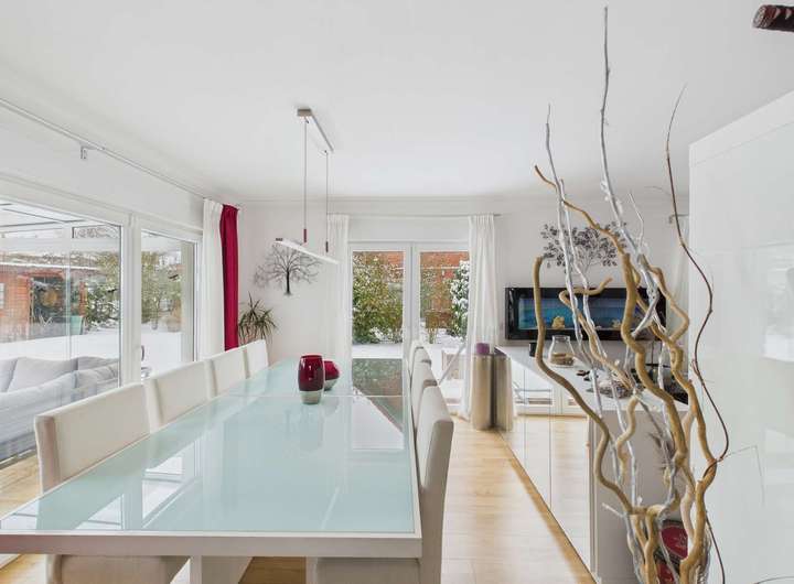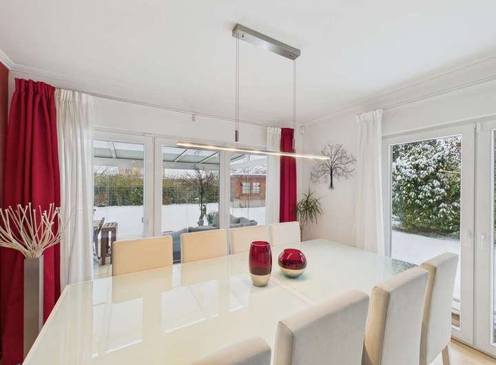 2009 erfüllten sich die aktuellen Besitzer ihren Wohntraum mit diesem sehr geschmackvoll designten Wohnhaus, das keine Wünsche offen lässt. Vom großzügigen Eingangsbereich bis hin zum traumhaften Wintergarten wurde hier an alles gedacht. Die moderne Küche mit direktem Zugang zum Wohnzimmer ist selbstverständlich im Kaufpreis enthalten. Fußbodenheizung, Außenjalousien, Masterbad und Kaminofen sind einige der Ausstattungsmerkmale, die wir Ihnen gerne zeigen möchten. Sie sind neugierig geworden? Dann freuen wir uns auf Ihre Kontaktaufnahme. Gerne vereinbaren wir mit Ihnen einen Besichtigungstermin.