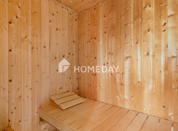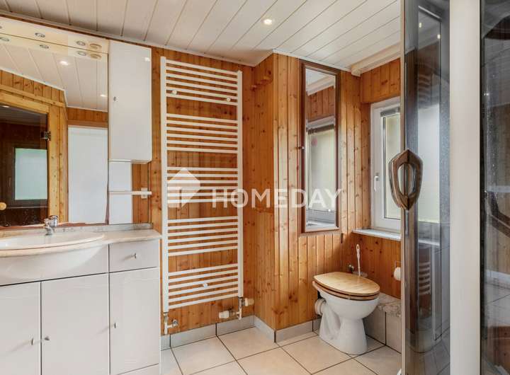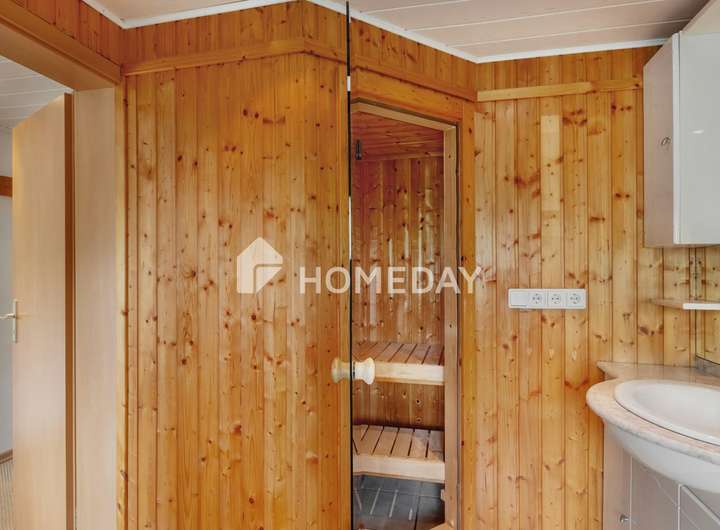 Im Obergeschoss stehen vier flexibel nutzbare Zimmer zur Verfügung. Das zweite Tageslichtbad mit moderner Multifunktionsdusche und direktem Zugang zur hauseigenen Sauna sorgt für zusätzlichen Komfort und Wellness im eigenen Zuhause.