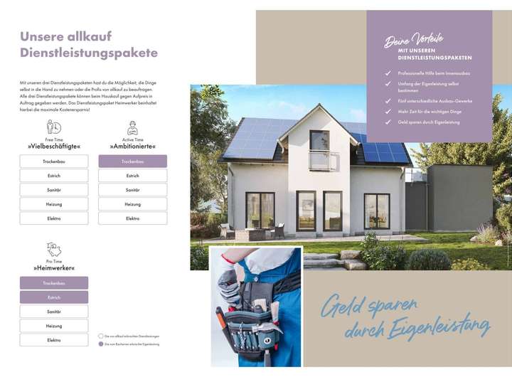 Bei allkauf legen wir großen Wert darauf, dass Ihr Haus genau nach Ihren Vorstellungen gebaut wird. Ob der Innenausbau, die Raumaufteilung oder die Wahl der Materialien - Sie haben die Kontrolle über Ihre Entscheidung. Lassen Sie Ihrer Kreativität freien Lauf und gestalten Sie Ihr Eigenheim ganz nach Ihrem Geschmack!