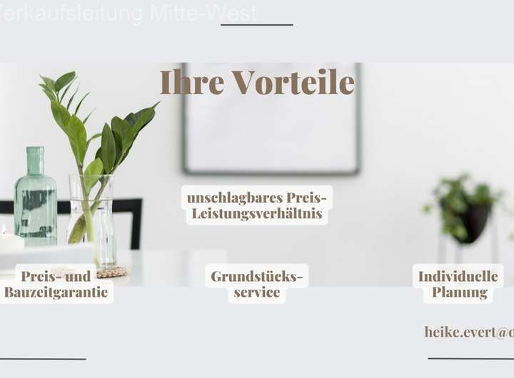 Das Haus ist für ein vorhandenes Grundstück vorgesehen, gemäß Bebauungsplan sind dort jedoch auch andere individuelle Hauskonzepte möglich. Kommen Sie mit mir ins Gespräch.