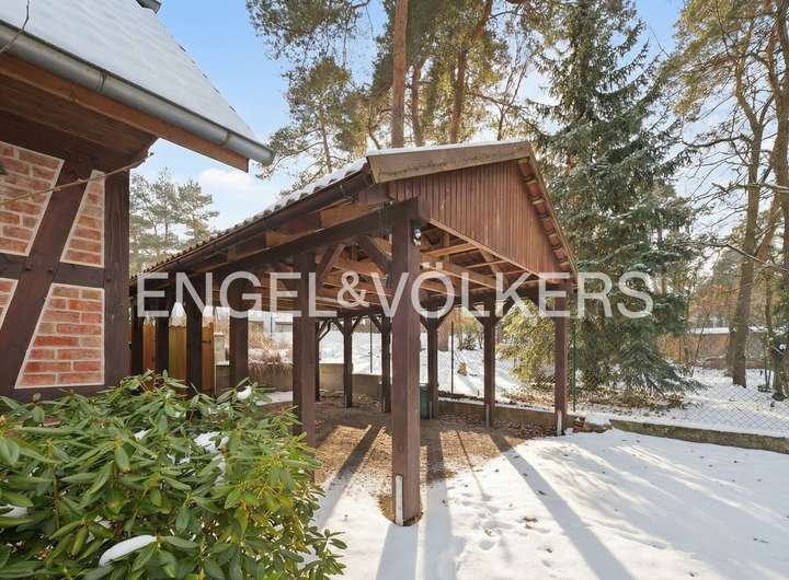 Das vollständig umzäunte Grundstück mit gewachsenem Baumbestand schafft eine geschützte, private Atmosphäre und fügt sich perfekt in die naturnahe Umgebung ein. Ein großzügiger Carport sowie das geräumige Gartenhaus ergänzen das Angebot und machen dieses besondere Zuhause zu einem Ort, an dem sich na