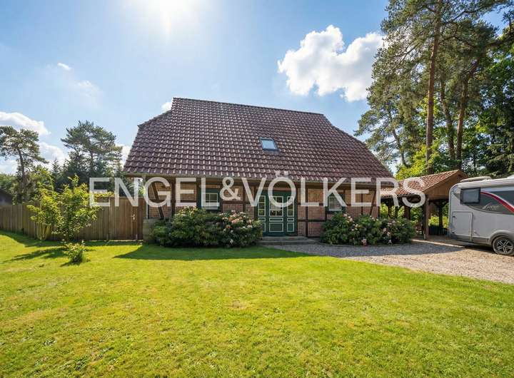 Dieses moderne, klassisch verklinkerte Niedersachsenhaus vereint auf besondere Weise traditionelle Handwerkskunst, nachhaltige Bauweise und eine außergewöhnliche Lage mitten im Grünen. In solider, hochwertiger Fachwerkbauweise auf Boden-platte errichtet, vermittelt die Immobilie bereits beim ersten Eindruck ein Gefühl von Beständigkeit, Geborgenheit und zeitloser Qualität – ein Zuhause für Menschen, die Wert auf Natürlichkeit, Ruhe und gesundes Wohnen legen.