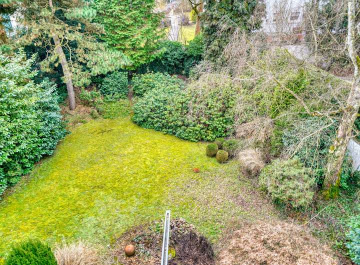 Die Villa ist vollständig von einem meisterhaft angelegten, eingewachsenen Garten umschlossen. Eine Terrasse mit Pergola dient als geschützter Rückzugsort und unterstreicht den exklusiven Charakter dieser Außenanlage, die in dieser Größe und Geschlossenheit eine Seltenheit darstellt.