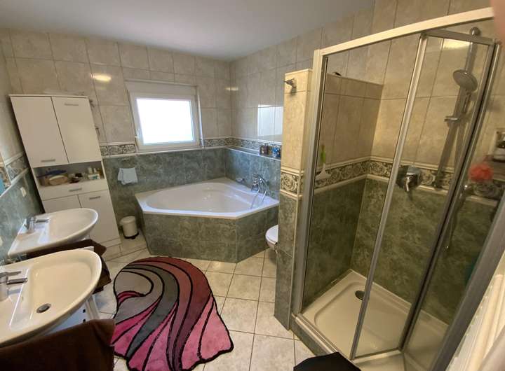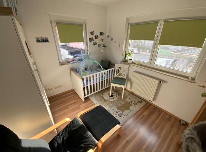Im 1. Obergeschoss liegt das Tageslichtbad mit Wanne und Dusche, das Schlafzimmer sowie Kinderzimmer.