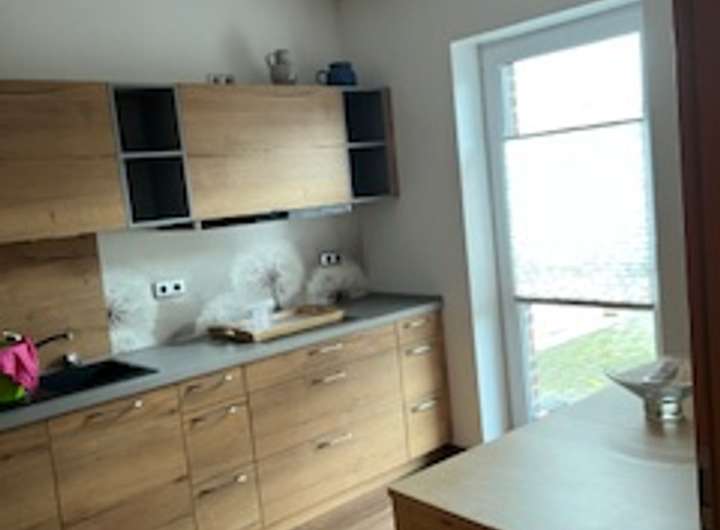 Der direkt angebaute Bungalow überzeugt mit einer barrierearmen Gestaltung und einer Wohnfläche von ca. 70 m². Hier befindet sich eine praktische Küche, ideal für eine eigene Wohneinheit oder als komplett autarker Bereich für Senioren, Gäste oder Mitarbeiter.
