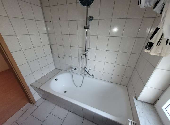neuer Vinylboden bzw. Fliesen, Tageslichtbad mit Badewanne, Einbauküche mit Waschmaschine, Cerankochfeld, Backofen, Kühl-Gefrierkombination, separater Abstellraum im EG, Vodafone-Kabelanschluss für TV + schnelles Internet möglich.