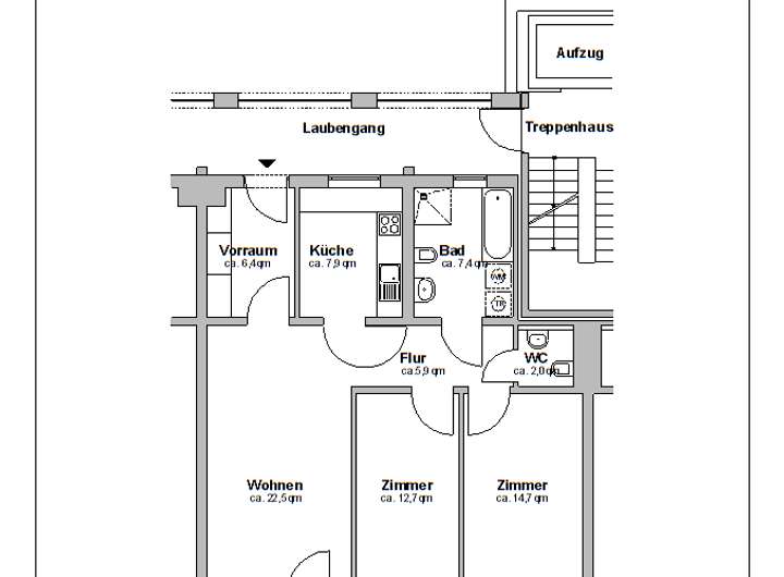 Zur Ausstattung der großzügig geschnittenen Wohnungen gehören neben Balkon oder Terrasse nach Süden, eine hochwertige Markeneinbauküche (enthalten sind u. a. Cerankochfeld, Backofen, Dunstabzugshaube, Kühl- und Gefrierschrank), Parkettboden, Badezimmer mit bodengleicher Dusche und zusätzlicher Badwanne, Anschlußmöglichkeit für Waschmaschine und Trockner, teilweise Gäste-WC, teilweise Abstellraum, größtenteils Einbauschrank als Abstellmöglichkeit im Vorflur, Gegensprechanlage mit Videoüberwachung, Multimedianschluß in Wohn- und Schlafräumen, Kellerraum etc.