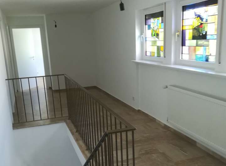 Das Büro (ca. 140 qm) verfügt über einen großzügigen Empfangsbereich. Eine Küche für die Mitarbeiter sowie zwei Toiletten sind vorhanden. Der Büro-Anbau ist zum Teil unterkellert.