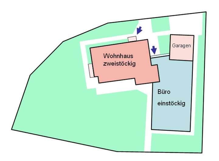 Angrenzend an das Wohnhaus befinden sich auf gleichem Grundstück Büroräume mit separatem Eingang. Die Räume bieten Platz für mehrere Mitarbeiter. Das gesamte Objekt ist ideal für Freiberufler, die Wohnen und Arbeiten verbinden wollen.