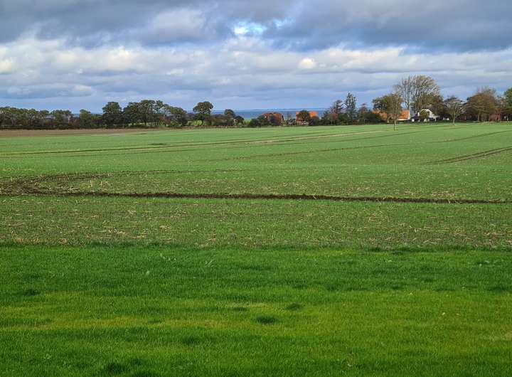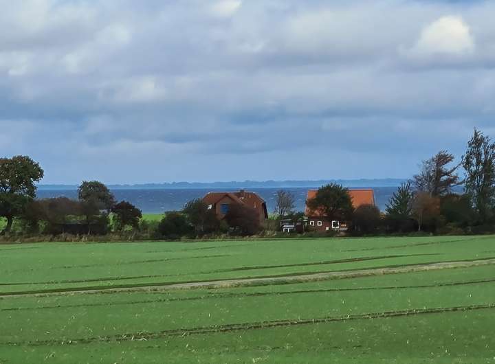 Doppelhaushälfte als Maisonettewohnung, am Feldrand mit unverbaubarem Blick auf die Ostsee. Großes Gartengrundstück.