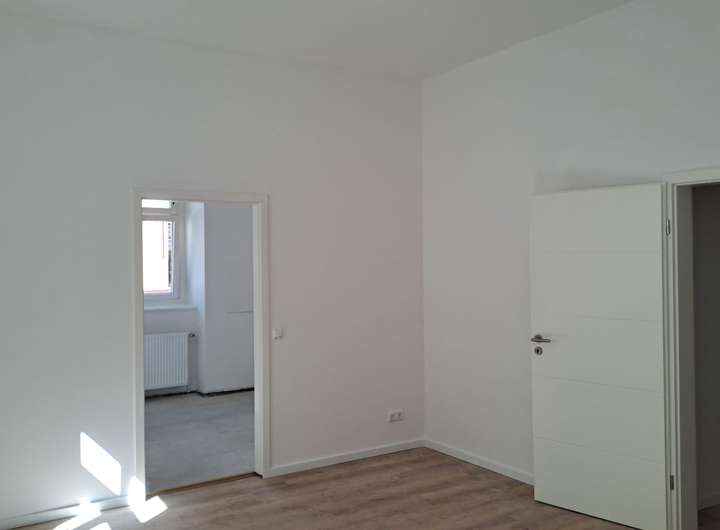 Die Wohnung wurde komplett neu saniert. Die Fußböden in Wohn- und Schlafbereichen sind mit Vinyl ausgestattet.