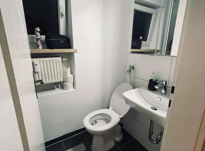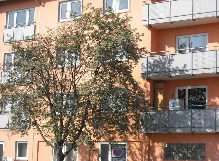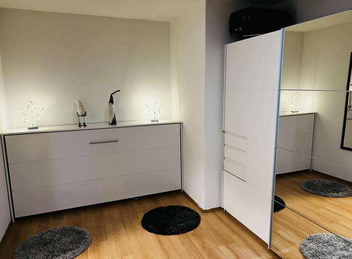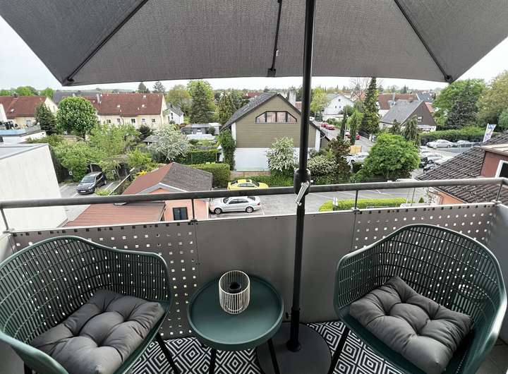 Der Wohn- und Schlafraum mit Balkon liegt sehr ruhig von der Straße abgewandt. Bushaltestelle vor der Haustüre - Bahnhof in 5 Min. zu Fuß - alle Einkaufsmöglichkeiten gegenüber.