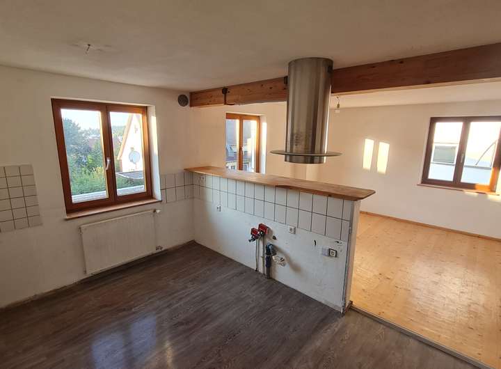 EG: 1 Zimmer, kleines Bad mit WC, Wohnzimmer, Esszimmer, Küche