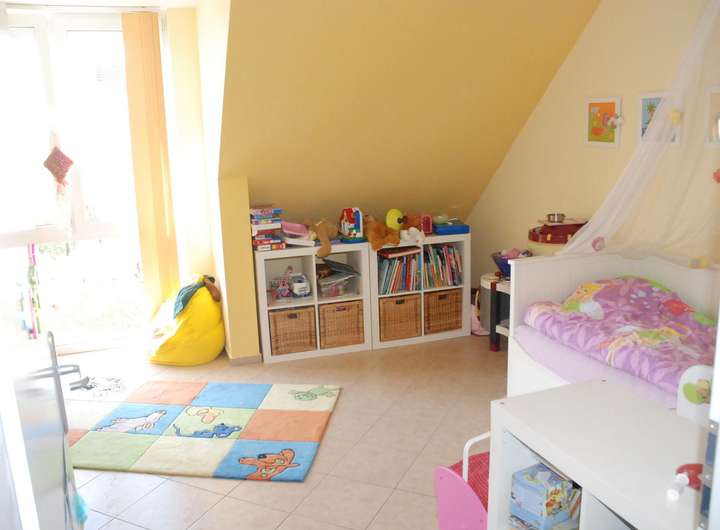 Das Dachgeschoß ist ausgebaut und bietet einen großen Raum, der als Spiel- oder Lesezimmer genutzt werden kann.