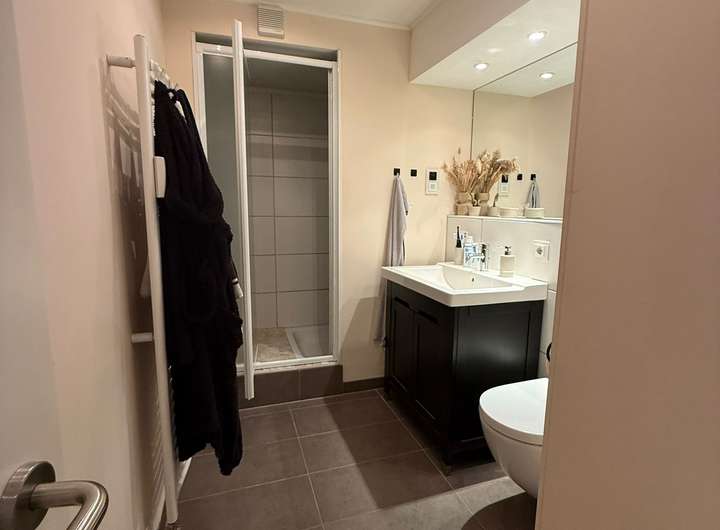 So wurden schöne Oberböden aus Laminat ausgesucht, das Bad saniert und sehr geschmackvoll neu gestaltet, die Küche zweckmäßig eingerichtet und ein begehbarer Kleiderschrank gebaut.
