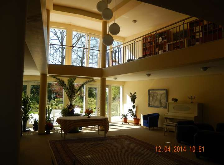 Über die großzügig gestalteten, lichtdurchfluteten Flure mit reizvollen Ausblicken in die Grünanlagen erreichen Sie das Foyer, den Treffpunkt der Anlage.