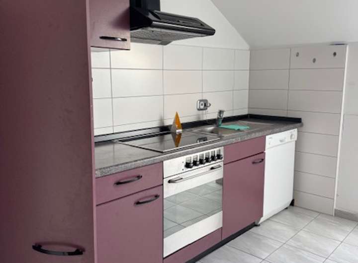 Die Küche ist gefliest und beinhaltet eine Einbauküche, diese wird aufgrund ihres Alters kostenlos zur Verfügung gestellt, kann bei Bedarf aber auch von neuen Mieter ausgetauscht werden.