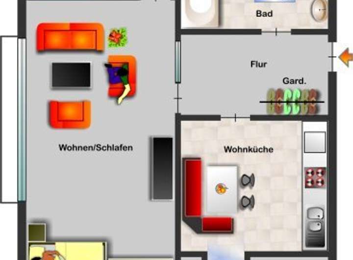 Hier befindet sich die perfekte 1-Zimmer Wohnung. Auf diesen rund 42 m² kannst du dich voll einrichten und wohlfühlen.