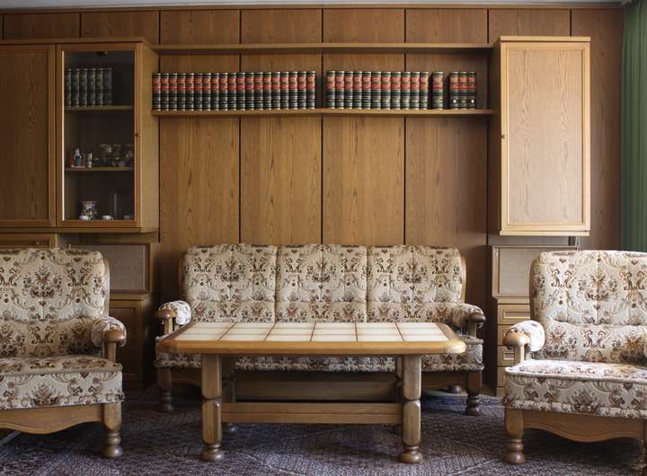 Die Möblierung ist sehr gepflegt und in sehr gutem Zustand. Größtenteils massiv Echtholz.