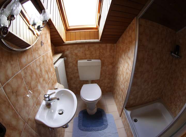 Im Dachgeschoß steht ein kleines Duschbad und ein weiteres Zimmer mit Einzelbett oder Doppelbett, großem Schreibtisch und Schränken zur Verfügung. In einem separaten Raum kann noch eine Einbauküche installiert werden.