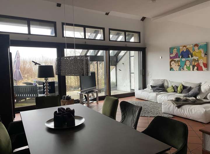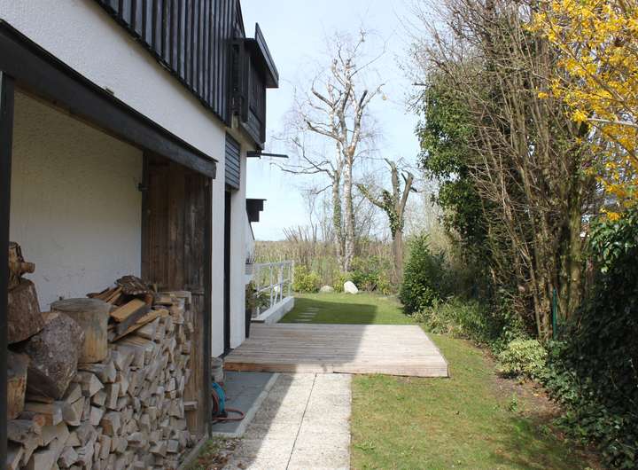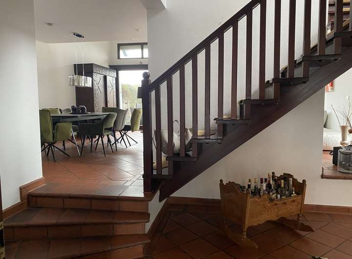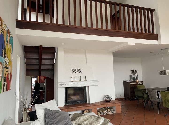 Herzstück des Hauses ist der großzügige Wohn- und Essbereich mit offener Galerie und offenem Kamin, der eine besondere Wohnatmosphäre schafft. Von hier aus gelangen Sie auf die schöne, sonnige Terrasse, die zum Entspannen, Essen im Freien und Genießen der ruhigen Lage einlädt.