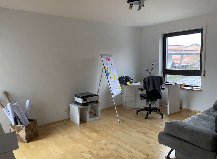 Direkt neben dem Hauseingang befindet sich ein weiteres Zimmer mit angrenzendem Badezimmer, das sich ideal als Gästezimmer, Arbeitszimmer oder zusätzliches Kinderzimmer eignet.