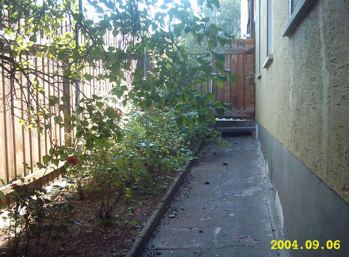 Am Rande des östlichen Teils des Grundstücks steht die Doppelhaushälfte, wobei die Südseite an das Nachbargebäude grenzt.